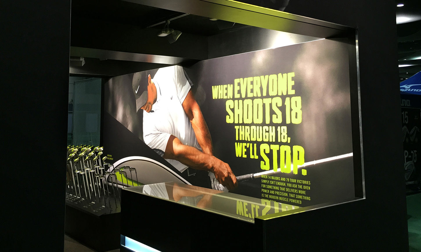 Nike Golf attended the 2015 PGA show to showcase and allow golf enthusiasts to get their hands on and test their latest products. The seasons creative directive designs were used to decorate the walls, rooms and displays to enhance brand presence and messaging of key products to the consumer.